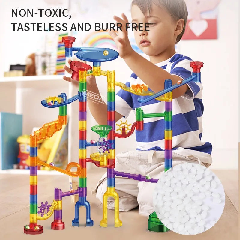 Hergestellt aus hochwertigen, sicheren Materialien, bietet der MarbleRun-Bausatz Eltern ein gutes Gefühl, während Kinder frei und sicher spielen. Perfekt für unbeschwerte Spielmomente.